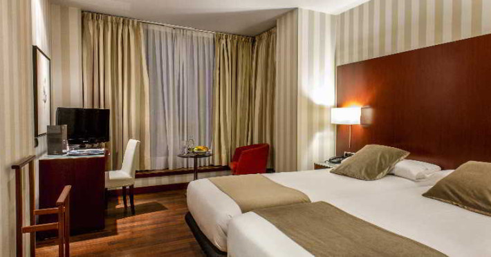 Built in 2004 the hotel has 5 floors with a total of 74 rooms including 26 singles, 47 doubles and 1 suite. Guests are offered a 24-hour reception and may store their valuables in the hotels safe. In addition there is a TV room, a café, lifts, a terrace and a TV room as well as an air-conditioned à la carte restaurant. Room and laundry service as well as a doctor on call are a number of the services available. Business guests may take advantage of the conference room and the Internet terminal. There is a car park and garage for guests arriving by car..Hotel situated in full financial centre of Barcelona. The hotel is only 3 underground stations from Plaça Catalunya and the Ramblas, which also makes it attractive to tourists. It offers easy access by public transport, close to the Metro and a short journey from the airport and train stations..All of the comfortable rooms have an en suite bathroom with a shower, bath and hairdryer. In addition, they have a minibar, safe, direct dial telephone, satellite/ cable TV, air conditioning and individually regulated heating. Furthermore, Internet access and an alarm service are also offered..A breakfast buffet is available to guests each morning..A massage service is on offer within the hotel..American Express, Diners Club, MasterCard and VISA are accepted in the hotel.Datorita dinamicitatii domeniului disponibilitatea ofertelor se modifica de la un moment la altul. De aceea ofertele sunt valabile in limita locurilor disponibile. Agentia nu este responsabila pentru eventualele neconcordante care pot aparea intre informatiile privind tarifele si alte detalii din site si informatiile primite in agentie. In aceste cazuri vor avea prioritate, intotdeauna, informatiile primite in agentie.