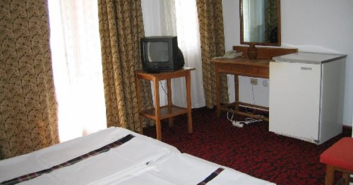 Restaurant: Hotelul nu are restaurant propriu. Masa poate fi servita si la restaurantele din apropiere, nominalizate la receptie, si se serveste in sistem ,,fisa cont deschisa pentru fiecare client.