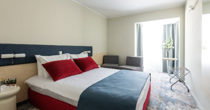 Dotari: pat matrimonial (160/200 cm sau 2 paturi twin de 90/200cm), TV, AC, frigider minibar, grup sanitar, cabina de dus, articole pentru toaleta, Wi-Fi, uscator de par, papuci, suport bagaje.