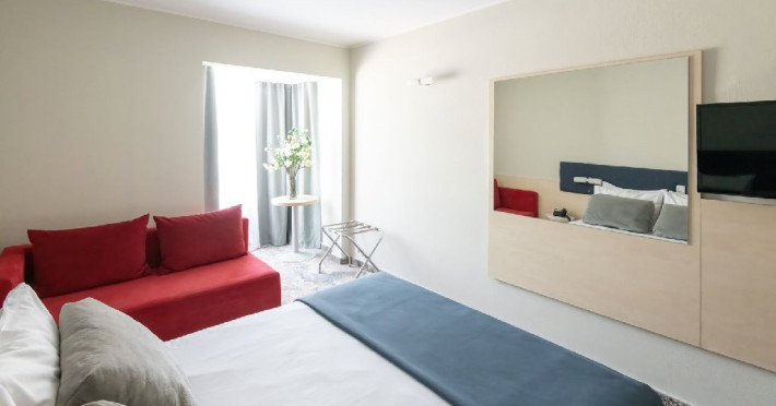 Camerele duble Junior cu vedere partiala la mare Jupiter/Junona - au in dotare pat matrimonial, o canapea fixa, au vedere partiala la mare. Sunt dotate cu: bai cu cabina de dus, uscator de par si cosmetice hoteliere, papuci, mocheta, gresie pe hol si in baie, balcon cu 2 scaune, televizor , internet wireless, seif, masuta, minibar, aer conditionat, telefon, acces pe baza de card magnetic.