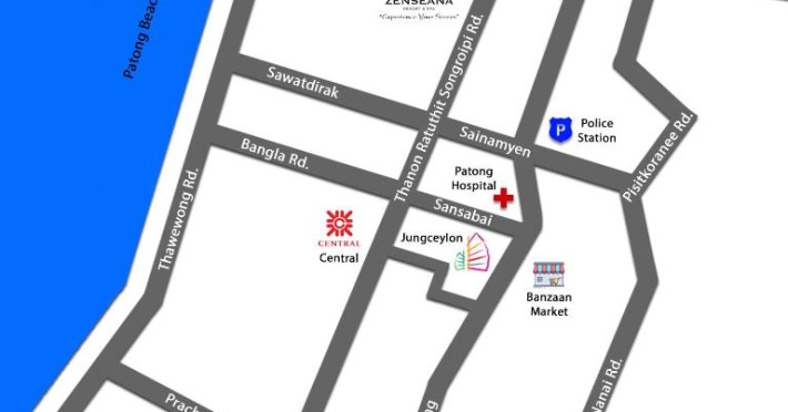 Cele mai populare puncte de interes situate in apropiere de Zenseana Resort & Spa includ plaja Kalim, centrul comercial Jungceylon și stadionul de box Patong. Cel mai apropiat aeroport este Aeroportul Internațional Phuket, situat la 39 km. Hotelul oferă un serviciu de transfer de la/ la aeroport, la un cost suplimentar.