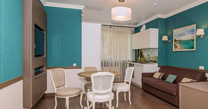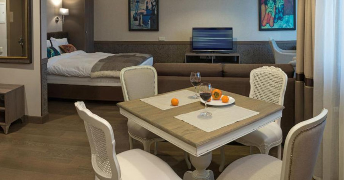 Fiecare cameră are TV cu ecran plat cu canale prin satelit și zonă de relaxare. Unele camere sunt dotate cu bucătărie.