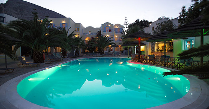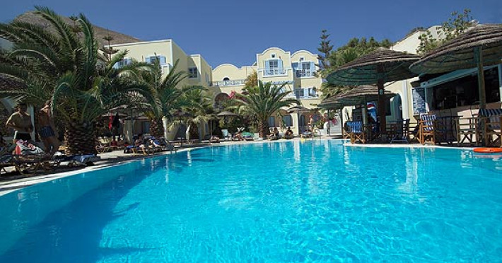 Hotelul Zaphyros 3* este situat la 250 m de plaja, in centrul statiunii Kamari, la 5 km de aeroport, 8 km de capitala Fira, la 14 km de portul Athinios, iar la 100 m gasiti statia pt mijloace de transport.