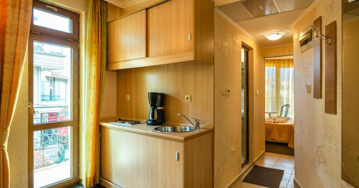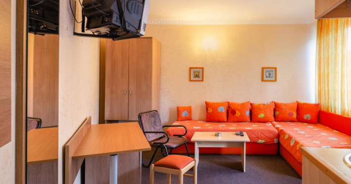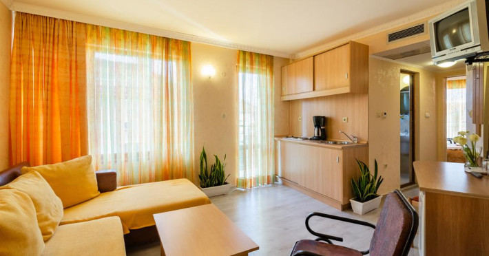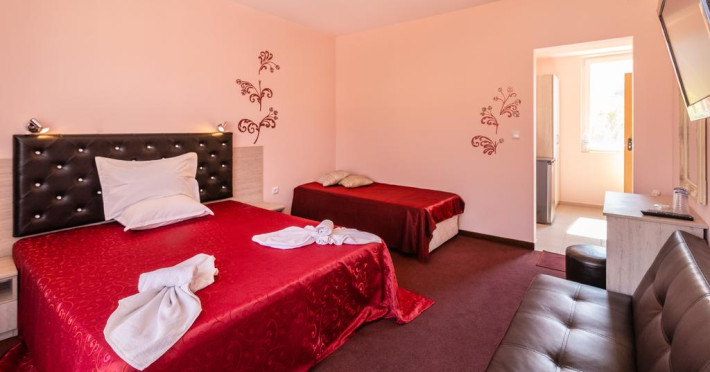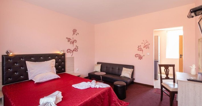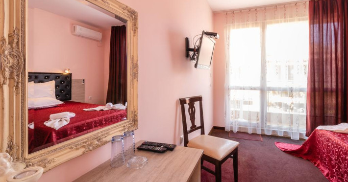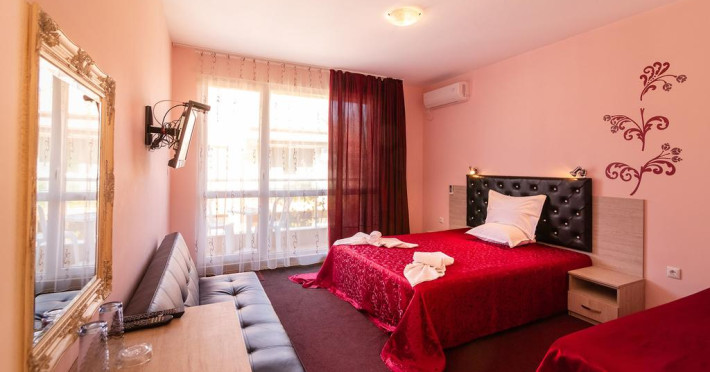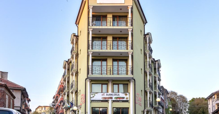 Zeus Hotel Pomorie este o proprietate de 3 stele situată în Pomorie care oferă unități de cazare cu aer condiționat, grădină și o terasă unde oaspeții pot petrece timp împreună cu prietenii sau familia. Proprietatea are servicii de recepție cu program non - stop și închirieri auto. Se oferă acces gratuit la internet Wi-fi în spațiile publice.