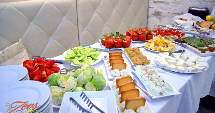 La Zeus Hotel Pomorie oaspeții au la dispoziție un restaurant care servește mâncare à la carte. Preparate din bucătăria locală și mediteraneană așteaptă să fie degustate în fiecare zi la micul dejun, prânz și cină. Pizza este de asemenea o opțiune culinară pentru cei gurmanzi. Masa poate fi servită atât în interior, cît si în aer liber, pe terasă, în funcție de vreme. Oaspeţii pot avea diverse băuturi răcoritoare sau alcoolice la bar. În cadrul proprietății există și o cafenea ideală pentru o gustare rapidă. Pentru cei cu anumite nevoi de nutriție, Zeus Hotel Pomorie oferă meniuri pentru diete speciale.
