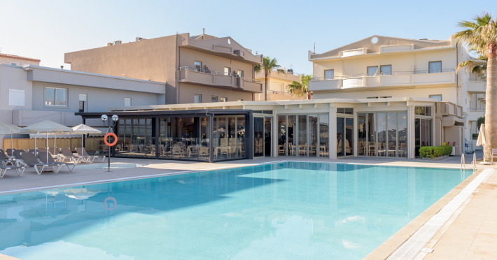 The 4 star All Inclusive Zeus Hotels Neptuno Beach is located directly on the long sandy beach of Ammoudara. Located close to the vibrant city of Heraklion and in walking distance from an array of shops, restaurants and bars. It is ideal to combine beach with city holidays! Make yourself comfortable in one of the 136 rooms the hotel features. Many rooms have been recently renovated with a fresh design and modern decor to liven up your stay and put you in a summer mood.The 4 star All Inclusive Zeus Hotels Neptuno Beach is located directly on the long sandy beach of Ammoudara. Located close to the vibrant city of Heraklion and in walking distance from an array of shops, restaurants and bars. It is ideal to combine beach with city holidays! Make yourself comfortable in one of the 136 rooms the hotel features. Many rooms have been recently renovated with a fresh design and modern decor to liven up your stay and put you in a summer mood.