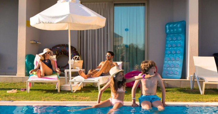 Proprietatea este o alegere potrivită pentru familiile cu copii. Cei mici se pot distra în aer liber la piscina pentru copii, prevăzută cu tobogan cu apă sau în locul de joacă special amenajat. Pentru orele toride cei mici pot opta pentru clubul amenajat la interior, unde există jocuri și programe de animație.