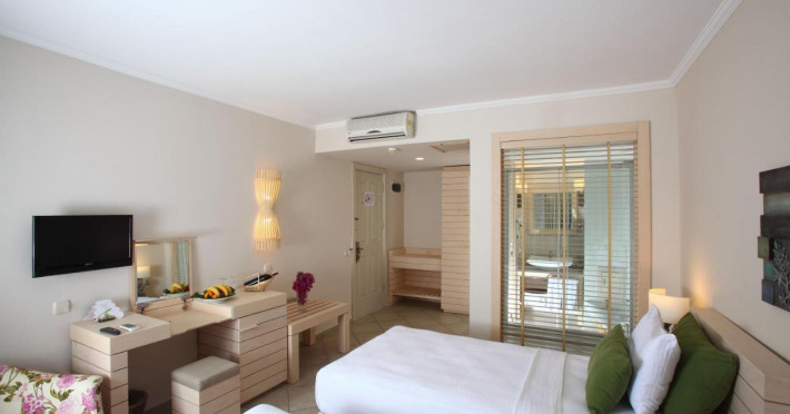 Localizare: Hotelul este situat in apropiere de Plaja din Torba si la o distanta de 25 km de Aeroportul Milas-Bodrum. Facilități hotel: piscină exterioară, acces imediat la plajă, camere de familie, WiFi gratuit inclus, transfer de la și/sau la aeroport, spa și centru de wellness, parcare gratuită, sală de fitness, bar, zonă de plajă privată. Dotări camere: balcon, vedere la grădină, aer condiționat, baie privată, TV cu ecran plat, terasă, Minibar. Servicii contra cost: serviciu de transfer, serviciu de curățătorie și călcătorie, snorkelling, scufundări, facilități sporturi nautice, pescuit, echipament tenis, biliard, masaj, sală fitness, spa și centru wellness, saună, jacuzzi. IMPORTANT: Descrierea hotelului se bazează pe detaliile disponibile la momentul pregătirii tarifelor pentru sezonul turistic ce urmează a se desfășura și are caracter pur informativ. Hotelul poate aduce modificări de structură, denumiri camere, tip servicii incluse/neincluse și altele, fără a notifica în prealabil. Pentru informațiile oficiale vă rugăm să consultați website-ul hotelului.Datorita dinamicitatii domeniului disponibilitatea ofertelor se modifica de la un moment la altul. De aceea ofertele sunt valabile in limita locurilor disponibile. Agentia nu este responsabila pentru eventualele neconcordante care pot aparea intre informatiile privind tarifele si alte detalii din site si informatiile primite in agentie. In aceste cazuri vor avea prioritate, intotdeauna, informatiile primite in agentie.