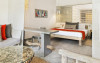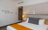 Camere: sunt luminoase, cu un mobilier modern, aer conditionat, seif, facilitati pentru prepararea de ceai si cafea. Baia este prevazuta cu dus si uscator de par.