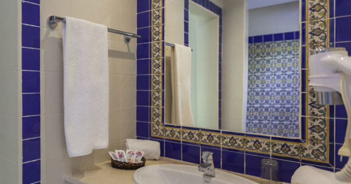 Toate camerele hotelului sunt dotate cu balcon sau terasa mobilata, aer condiționat, seif, Wifi, minibar (cu plata, la cerere), TV, cadă/ duș, uscător de păr, articole de toaletă.