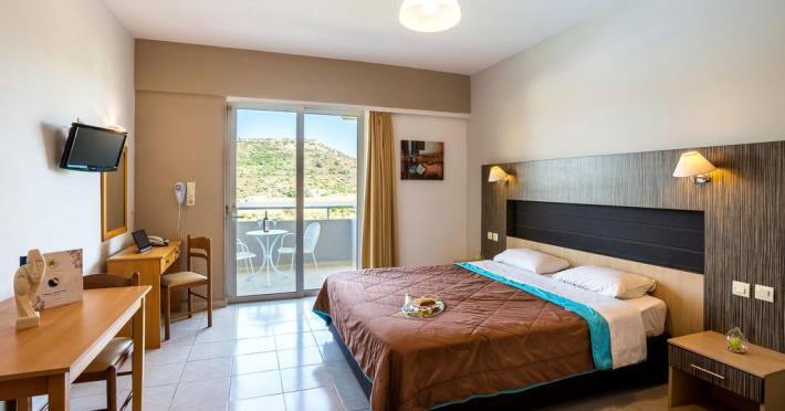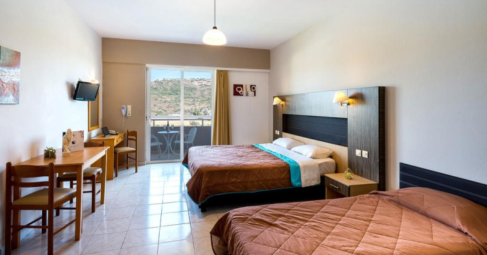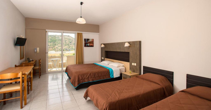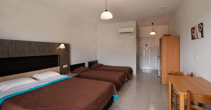 Sunt disponibile 48 camere. Unele camere au balcon cu vedere la mare sau la piscină. Fiecare cameră dispune de cană-fierbător. În camere există baie cu cadă sau duș ce are în dotare foehn și articole de toaletă gratuite. Camerele confortabile de la Zoes Studios au pardoseală de gresie/ marmură, aer condiționat, Tv cu canale prin satelit și seif. Oaspeții au acces gratuit la serviciul Wi-fi în camere. Curățenia in cameră se face zilnic. În fiecare unitate de cazare există frigider și ustensile de bucătărie. De asemenea, este disponibilă o zonă de luat masa. Proprietatea oferă camere pentru familie cu o suprafață mai mare și un număr mai mare de paturi față de cele standard. Se pot rezerva de asemenea camere pentru nefumători.