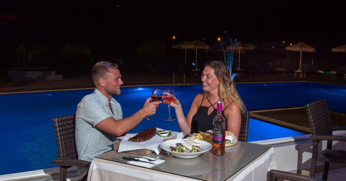 La Zoes Studios oaspeții au la dispoziție un restaurant care servește mâncare à la carte. Preparate din bucătăria locală și internațională așteaptă să fie degustate în fiecare zi la micul dejun, prânz și cină. Masa poate fi servită atât în interior, cît si în aer liber, pe terasă, în funcție de vreme. Oaspeţii pot avea diverse băuturi răcoritoare sau alcoolice la bar. De asemenea , în cadrul proprietății, există cafenea și snack bar ideale pentru o gustare rapidă. Oaspeţii îşi pot pregăti micul dejun şi alte mese şi le pot savura chiar pe balcon. Pentru cei cu anumite nevoi de nutriție, Zoes Studios oferă meniuri pentru diete speciale.