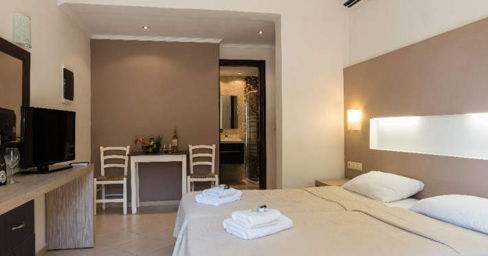 Camerele de la Zorbas Apartments sunt dotate cu aer condiționat, Tv cu canale prin satelit și seif. Fiecare cameră dispune de minibar. Unele camere au balcon cu vedere la piscină. Oaspeții au acces gratuit la serviciul Wi-fi în camere. În camere există baie cu cadă sau duș ce are în dotare foehn și articole de toaletă gratuite. Proprietatea oferă camere pentru familie cu o suprafață mai mare și un număr mai mare de paturi față de cele standard.