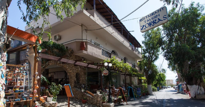 La Zorbas Apartments oaspeții au la dispoziție un restaurant care servește mâncare în stil bufet. Preparate din bucătăria grecească așteaptă să fie degustate în fiecare zi. Masa poate fi servită atât în interior, cît si în aer liber, pe terasă, în funcție de vreme. Oaspeţii pot avea diverse băuturi răcoritoare sau alcoolice la bar.