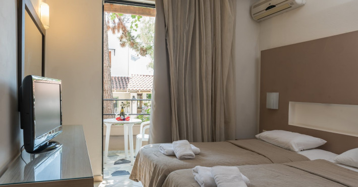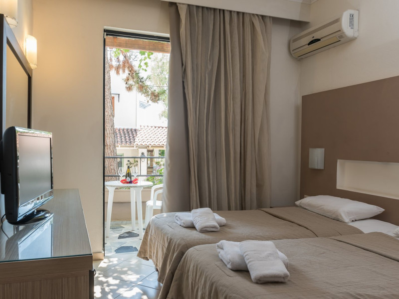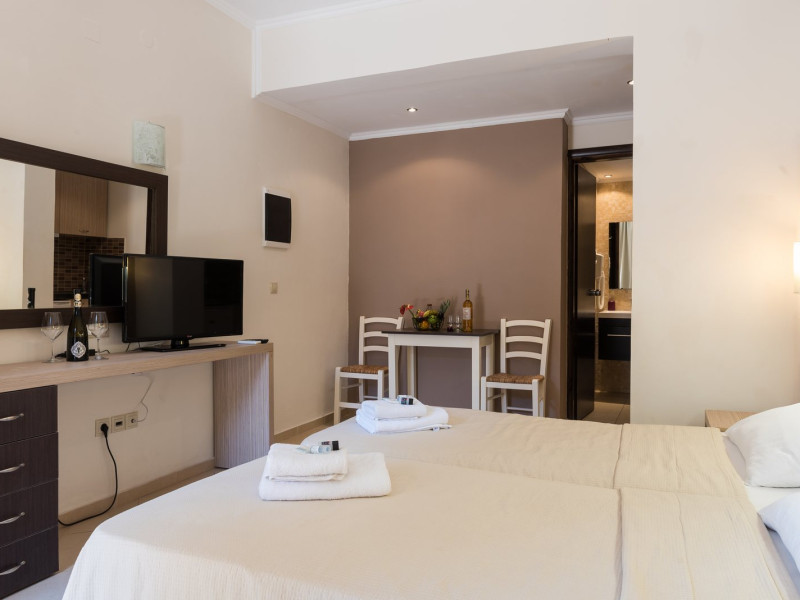 In the very heart of the resort village of Georgioupolis, merely 100m from the main square and the sea, Zorbas Hotel is situated, ready to accommodate you and offer you unforgettable holiday moments. 35 years of operation and professional experience in hotel business and customers service are a guarantee for every visitor. The recently renovated premises, the finest facilities, and the well-trained staff of Zorbas Hotel promise to live up to your expectations and transform your stay into an experience of joy and pleasure.