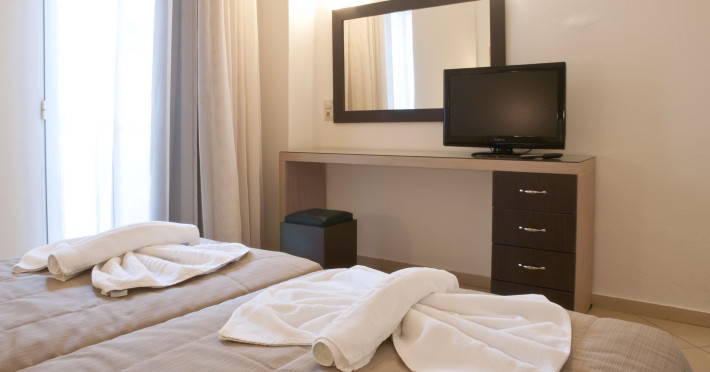 The Hotel offers you fully equipped rooms with modern luxuries and cozy spaces. In Zorbas Hotel we’ve attended to offer you fully equipped rooms with modern luxuries and cozy spaces.At the restaurant of Zorbas, you will taste flavors from the Mediterranean and traditional Cretan cuisine. You will enjoy dishes prepared with pure, fresh, local products in a pleasant and friendly ambiance. In the area of the restaurant, you may as well enjoy your drinks and beverages.