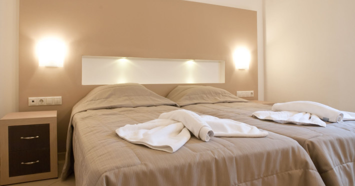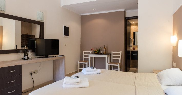 The Hotel offers you fully equipped rooms with modern luxuries and cozy spaces. In Zorbas Hotel we’ve attended to offer you fully equipped rooms with modern luxuries and cozy spaces.At the restaurant of Zorbas, you will taste flavors from the Mediterranean and traditional Cretan cuisine. You will enjoy dishes prepared with pure, fresh, local products in a pleasant and friendly ambiance. In the area of the restaurant, you may as well enjoy your drinks and beverages.