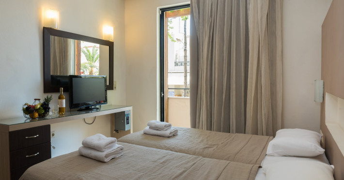 In the very heart of the resort village of Georgioupolis, merely 100m from the main square and the sea, Zorbas Hotel is situated, ready to accommodate you and offer you unforgettable holiday moments. 35 years of operation and professional experience in hotel business and customers service are a guarantee for every visitor. The recently renovated premises, the finest facilities, and the well-trained staff of Zorbas Hotel promise to live up to your expectations and transform your stay into an experience of joy and pleasure.