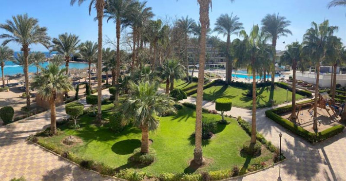 Localizare: hotelul este situat la 400 m de plaja El Sakia Beach si la 6 km distanta de Aeroportul International Hurghada. Facilitati hotel: balcon, terasa, gradina, camere pentru nefumatori, receptie non-stop, aer conditionat, internet gratuit, 3 piscine, plaja in apropiere, sezlonguri, umbrele de plaja, prosoape de plaja, restaurante si baruri, cafenea, room service, serviciu de concierge, parcare indisponibila. Activitati incluse: eveniment cu transmisie live, divertisment de seara, club pentru copii, animatori, mini golf, tenis de masa, teren de joaca pentru copii, camera de jocuri, teren de tenis si echipament, seri cu cina tematica, karaoke, sala de fitness. FIMPORTANT: Descrierea hotelului se bazeaza pe detaliile disponibile la momentul pregatirii tarifelor pentru sezonul turistic ce urmeaza a se desfasura si are caracter pur informativ. Hotelul poate aduce modificari de structura, denumiri camere, tip serivicii incluse/neincluse si altele, fara a notifica in prealabil. Pentru informatiile oficiale va rugam sa consultati website-ul hotelului.IMPORTANT