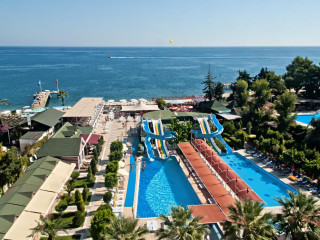 Locatie: Hotelul este localizat in statiunea Alanya, la 100 km de aeroportul din Antalya si la 22 km de orasul Alanya. Facilitati hotel: Hotelul detine o zona de plaja privata cu nisip fin, bar...
