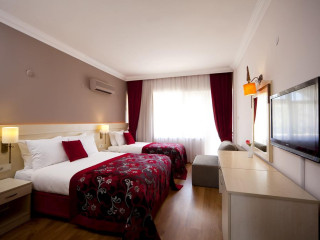 LOCATIE: Plajă: 300 m de la mare Side: 3 km Antalya: 70 km Aeroport Antalya: 60 km Transport: Taxi, autobuz CAMERE: Dotări Standard Camere: TV prin satelit, LCD, canale muzică, canale TV pen...