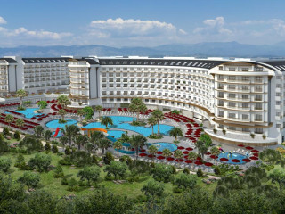 Calido Maris Hotel, un complex de lux cu 5 stele, este situat direct pe malul plajei, oferind o panoramă impresionantă asupra Mării Mediterane. Beneficiind de o plajă privată, piscină în aer liber ș...