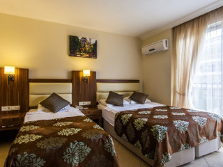 The Hotel is central located approximately 350m walking distance to the beach in Oba district of Alanya. Distance to the Airport 1: 40 km 45 min. GazipaÅa Airport Distance to the Airport 2: 130 km....