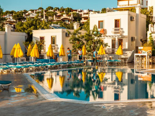 Acest hotel este amplasat într-o clădire albă tradiţională, în mijlocul unor grădini luxuriante din Bodrum.