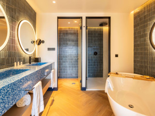 This beach hotel was built in 1997 and consists of 50 rooms of which 4 are single rooms and 46 are double rooms. Guests may make use of the 24-hour reception desk, a safe, lifts, a café, a TV room an...