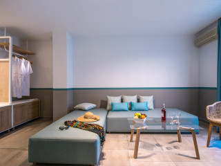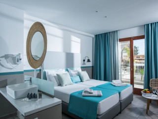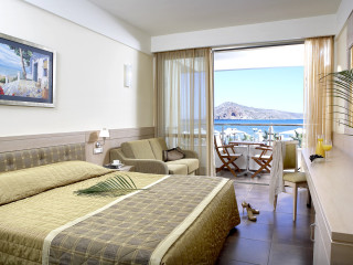 Thalassa Beach Resort is located beside the golden beach of Agia Marina, where guests enjoy the breathtaking view of the endless blue Cretan sea and Thodorou Island.