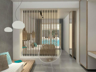 Enorme Teatro Beach Resort is not a hotel like all the others. The atmosphere refers to a beach club resort which emphasizes on the accommodation experience. Mixing the Cycladic mood of living and ent...