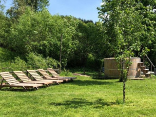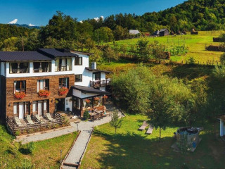 Facilitati complex: 4 camere cu pat matrimonial, 2 camere triple, 1 apartament (2 camere matrimoniale cu baie pe hol) si 7 casute din lemn, restaurant, sauna, sala fitness, teren de tenis, gradina, te...
