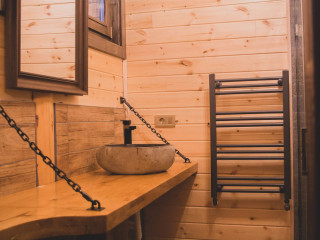 Cabana Q Chalet este o cabana din lemn masiv, cu mobila...