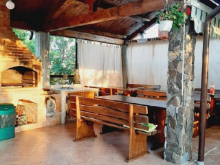 Facilitati pensiune: bucatarie comuna in foisor cu aragaz, cuptor microunde, gratar rustic.