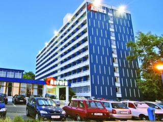 Aurora Hotel in Mamaia is located in the south of the resort, 25 meters from the beach and a few steps from Aqua Magic Park. Hotel facilities: restaurant (capacity of 600 seats), terrace, 3 elevato...