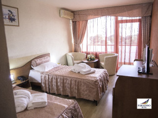 Hotel Paradiso is located on the seafront of Mangalia, 25 meters from the beach. Hotel facilities: restaurant (500 seats), terrace, bar (40 seats), treatment base, fitness room, beauty and manicure...