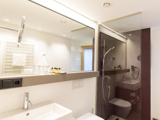 Acest hotel situat central pe piata istorică Gendarmenmarkt din Berlin oferă camere, un centru spa exclusivist si 2 restaurante cu vedere uimitoare la Catedrala Germană. O terasă frumoasă cu scaune...