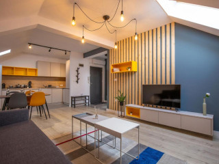 Apartamentele sunt moderne, dotate cu aer conditionat, internet Wi-Fi si complet utilate, astfel incat sa iti asigure intreg confortul de acasa. Apartamentele sunt compuse din living cu canapea extens...