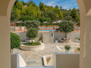 Nestled within an aged olive grove, amidst 13 acres of mountainside splendor, our six villas are masterfully designed to offer a sanctuary for the soul with the essence of historical Kefalonia. This s...