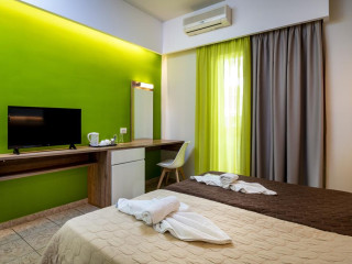 Localizare Hotelul contruit in 2008/2009 este localizat langa Marmari, pe coasta nord-vestica a insulei, la doar 50 m de plaja, 17 km de centrul orasului Kos si 15 km de aeroport. Facilitati hotel...
