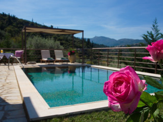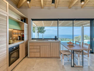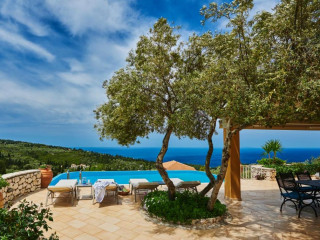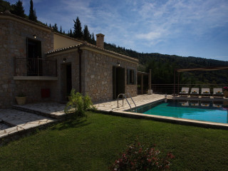 În regiunea Asplathia, la 6 km nord-vest de orașul Lefkada și la 7 km de plaja Agios Nikitas, cinci vile de piatră sunt răspândite pe pantele vestice ale unui deal verde luxuriant înconjurate de mă...