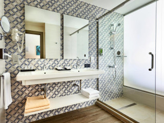 Riu Palace Maldivas- All Inclusive din Atolul Dhaalu are un restaurant, centru de fitness, o piscină in aer liber și un bar. Acest complex de 5 stele are grădină și camere cu aer condiționat, WiFi...