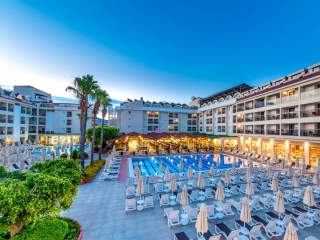 The hotel is located in the popular resort of Marmaris, one of Turkeys most beautiful towns. It is just 2 km from the town centre and 2.5 km to the marina; the nearest beach is just 230 m away. This a...