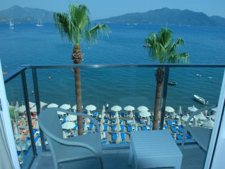 Hotelul este situat la 1 km de centrul Marmaris, pe malul marii. A fost construit in anul 2014, suprafata totala este 1000 m2. Are o cladire cu 6 nivele si 60 de camere. Hotelul dispune de plaja propr...