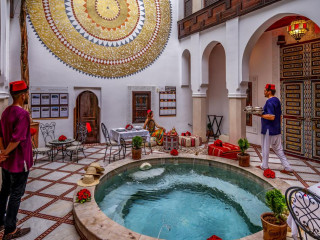 With a stay at Riad Zehar, you'll be centrally located in Marrakech, steps from Le Jardin Secret and within a 5-minute walk of Mouassine Mosque. This spa riad is 0.5 mi (0.9 km) from Jemaa el-Fnaa an...