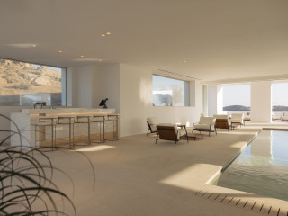 Atop a hill, above the soft sands of Megali Ammos beach, the newly-built Cape Mykonos blends Cycladic-chic design with heartfelt hospitality and cordial service.Built with respect to the traditional l...