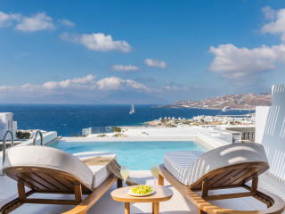 Este un hotel de lux exclusivist situat intr-un mediu autentic cicladic, amestecat cu aura cosmopolita din Mykonos. Promisiunea hotelului este de vacante memorabile in camerele extravagante cu piscine...