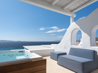 Villa Santa Katerina is located at Platis Gialos, Mykonos, Greece. It offers a great view of the sea as it is infront of it and it’s close to shops, cafe/bars, restaurants, beaches (Psarou beach, Pink...
