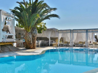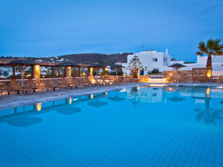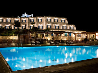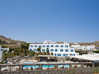 Hotelul este vopsit in culorile traditionale grecesti: alb si albastru si este asezat pe un deal cu vedere la golful Ornos, decorul perfect pentru un sejur minunat pe insula Mykonos.