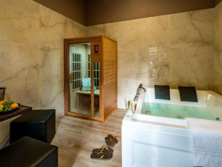 The hotel also has a beautiful park with special plants and trees during the summer where breakfast is served. Also the Garden of Taste, a little corner where we are dedicated to wine tasting, with ch...